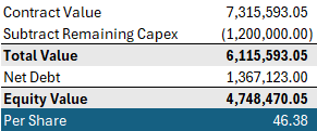 I get to ~$45 of DCF value for the current contracts